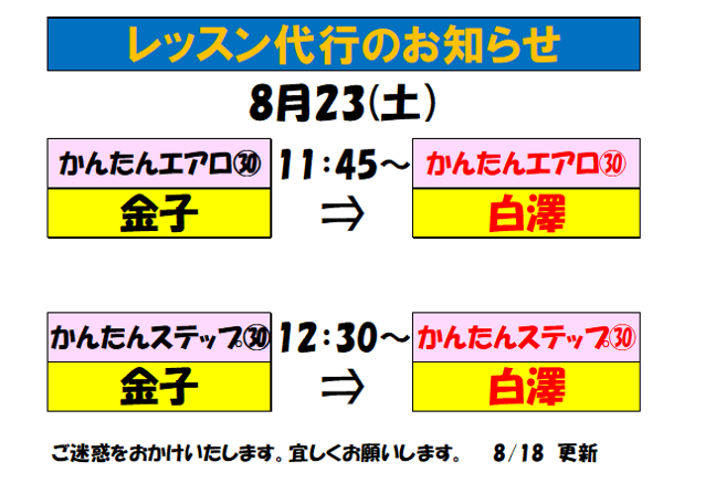 レッスン代行・休講のお知らせ:蔵の街スポーツクラブ